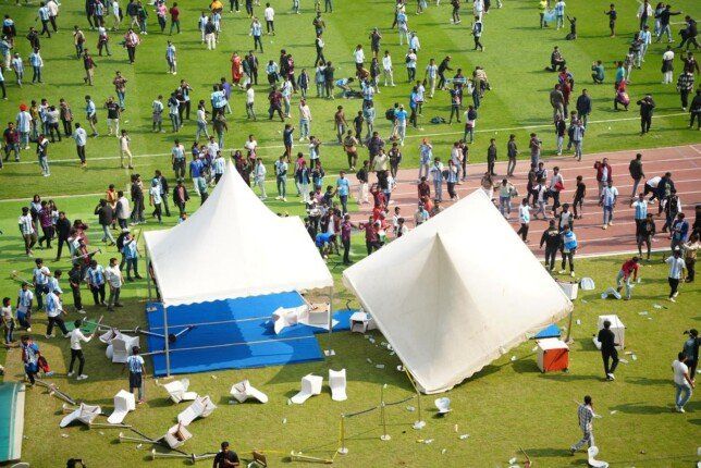 شهدت الجولة المرتقبة للاعب الأرجنتيني ليونيل ميسي في الهند اليوم السبت أحداثًا فوضوية، بعدما أقدم بعض المشجعين الغاضبين على إلقاء الزجاجات ومحاولة تخريب أحد الملاعب، بسبب عدم تمكنهم من رؤية نجمهم المفضل سوى لمحة سريعة فقط.