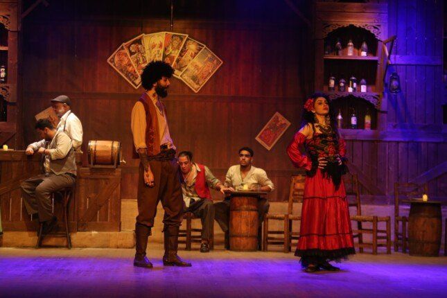 «كارمن» مأخوذة عن رواية الكاتب الفرنسي بروسبير ميريميه، دراماتورج محمد علي إبراهيم، وتتناول حياة كارمن الفتاة الغجرية المتمرّدة التي تمثل ثقافة الغجر في مواجهة ثقافة المدنية الإسبانية القائمة على النظام والقانون.