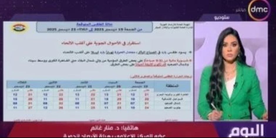 الأرصاد الجوية : استقرار حالة الطقس حتى منتصف الأسبوع المقبل.. وتحذر من شمس النهار - وضوح نيوز, اليوم الخميس 18 ديسمبر 2025 07:05 مساءً