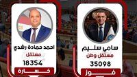 وحصل المرشح سامي سليم مرشح حزب مستقبل وطن على 35098 صوتا من أصل عدد أصوات صحيحة يبلغ 53452 صوتا، بينما حصل المرشح المستقل أحمد حمادة رشدي على 18354 صوتا.