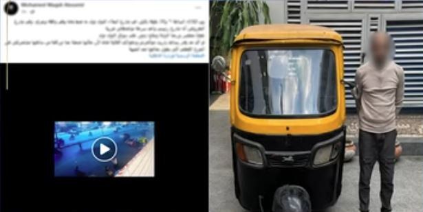 أمكن تحديد وضبط مركبة الـ"توكتوك" وقائدها (سائق - مقيم بدائرة القسم)، وبمواجهته اعترف بارتكاب الواقعة على النحو المشار إليه دون قصد.