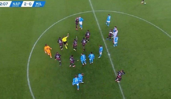 ونشبت اشتباكات بين لاعبي الفريقين في الدقيقة 81، بعد تدخل الإسكتلندي سكوت مكتوميناي لاعب فريق نابولي على الفرنسي كريستوفر نكونكو لاعب "الروسونيري"، ليتدخل حكم المباراة لتهدئة الوضع.