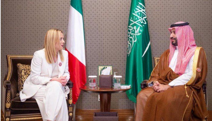 التقى الأمير محمد بن سلمان بن عبد العزيز آل سعود ولي العهد رئيس مجلس الوزراء السعودي، في العاصمة البحرينية المنامة اليوم، دولة السيدة جورجيا ميلوني رئيسة وزراء جمهورية إيطاليا، وذلك على هامش أعمال الدورة الـ 46 للمجلس الأعلى لمجلس التعاون لدول الخليج العربية.