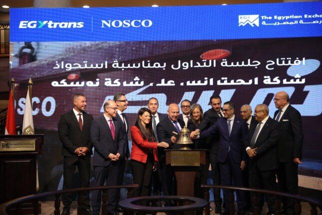 جاء ذلك ضمن فعالية «قرع الجرس» التي أقامتها البورصة المصرية احتفالا بالإطلاق الرسمي للمجموعة المتكاملة بين شركة «المصرية لخدمات النقل والتجارة - ايجيترانس» (ETRS.CA) والشركة الوطنية لخدمات النقل وأعالي البحار (نوسكو)، بعد استحواذ الأولى على 99.9٪ من أسهم نوسكو.