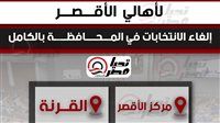 أُلغيت انتخابات مجلس النواب في جميع دوائر الأقصر لقرار من المحكمة الإدارية العليا وذلك بعد فحص الطعون المقدمة من مرشحي مجلس النواب داخل المحافظة، وتتكون الدوائر الملغي بها انتخابات مجلس النواب، في كل من مركز الأقصر، ودائرة القنة، و الدائة الثالثة التي تضم مركز إسنا.